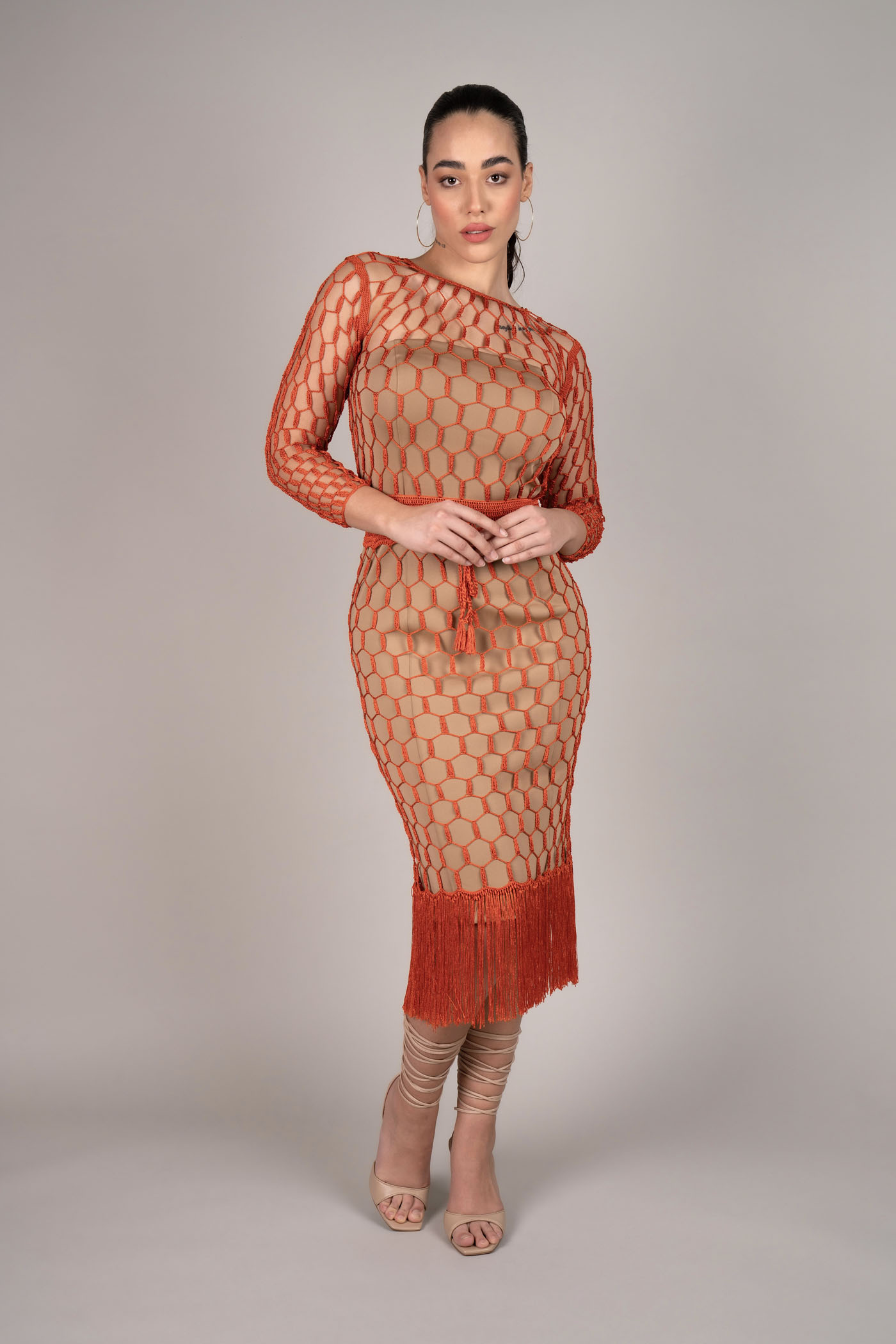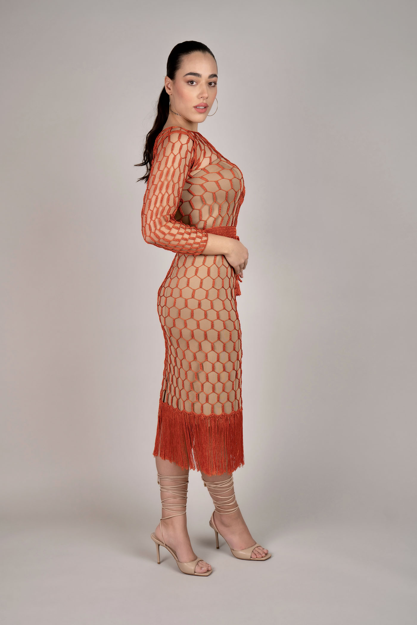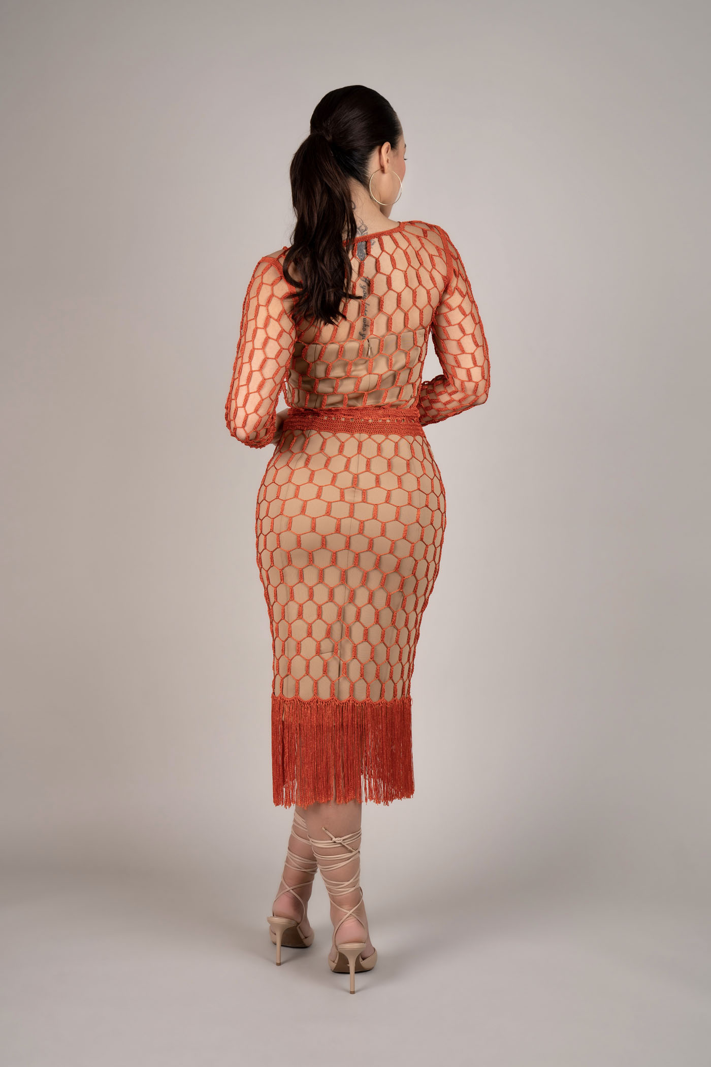 Dieses kleid ist handgefertigt und einzigartig, unsere Kunsthandwerker machen den ganzen Prozess von Hand. Wabenförmiger Stoff mit Fransen am unteren Ende des Rocks. Vielseitiges Kleid, für jede Gelegenheit (Strand, Casual, elegant).